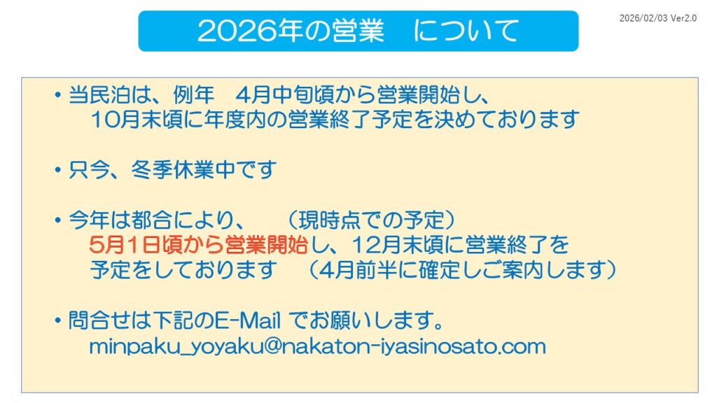 2026年の営業予定